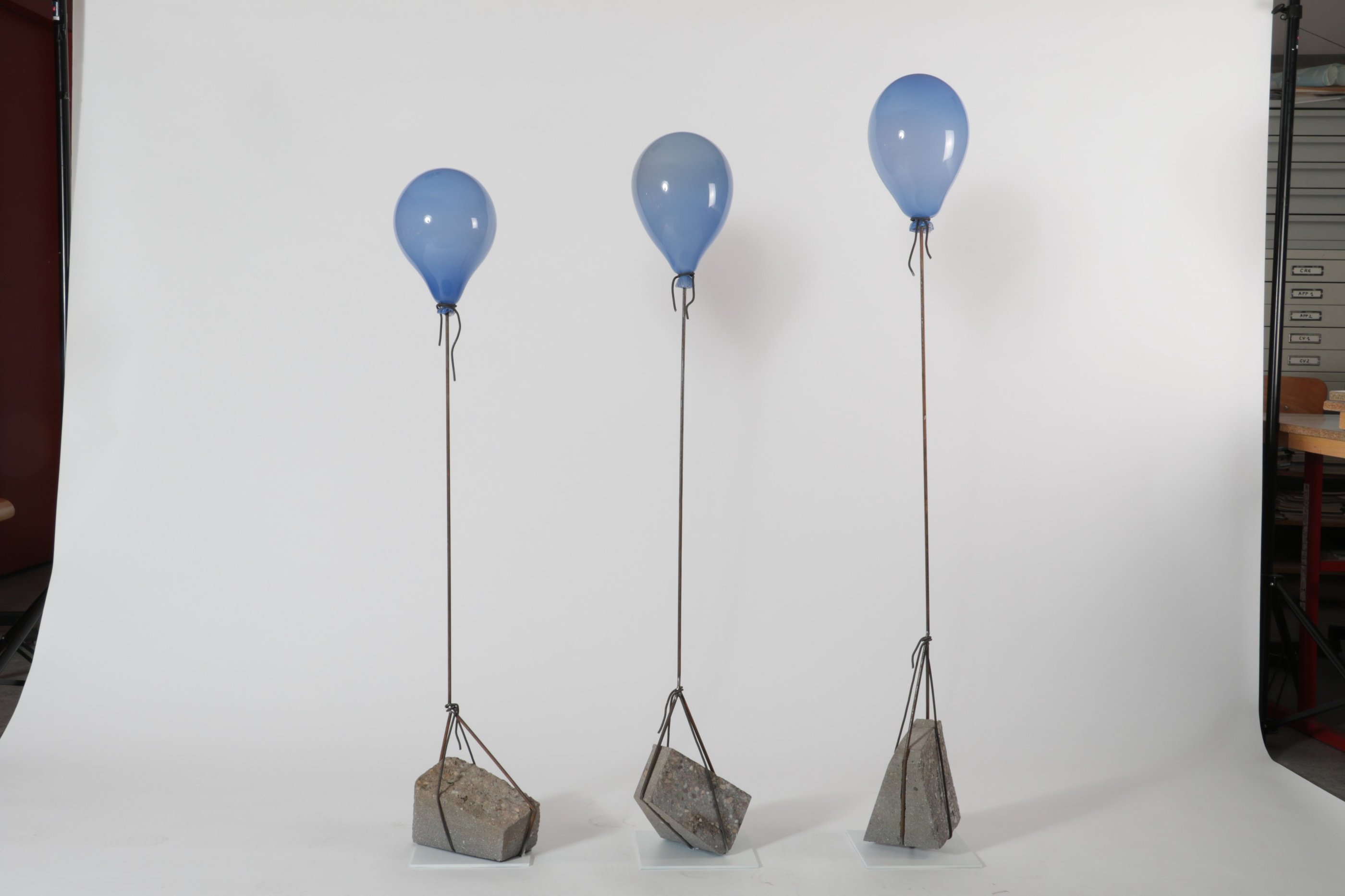 Steel, blown and sandblasted glass, electrical system, magnets