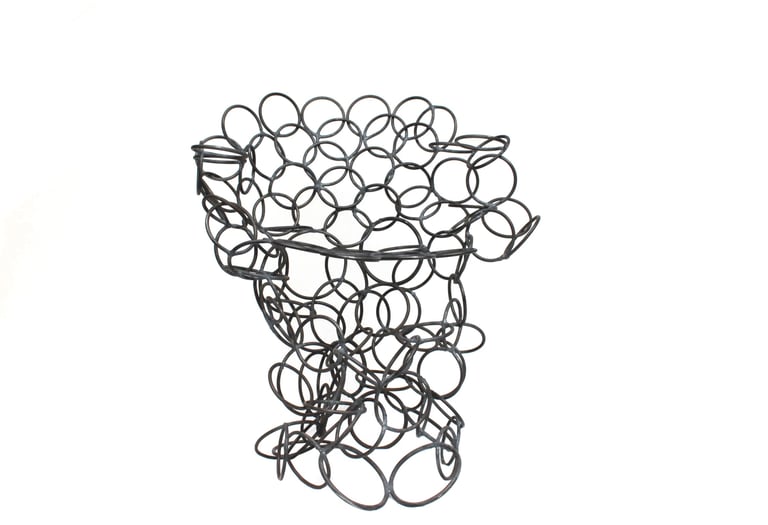 This chair appears to emerge from apparent chaos. A circular, irregular, and teeming entanglement shapes itself into volume — revealing both the internal logic of its design and a loss of formal reference points.